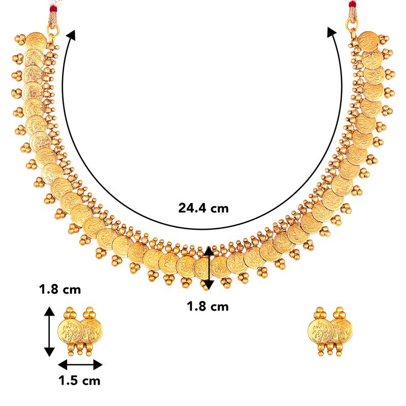 Aheli South Indian Traditional Bridal Short Maharani Coin Necklace Earrings Jewellery Sets