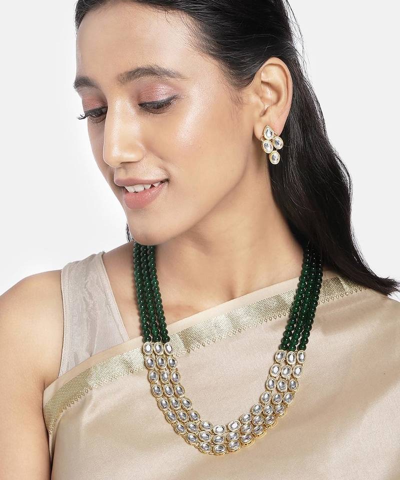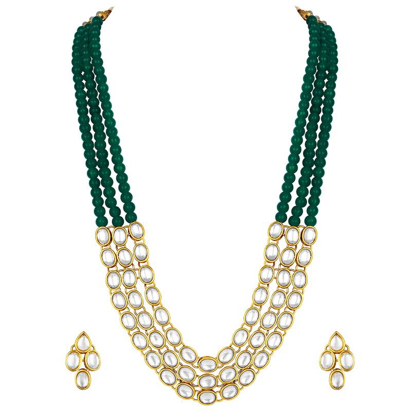 Aheli Traditional Green Long Necklace Jewellery Set With Earring Gift For Women
