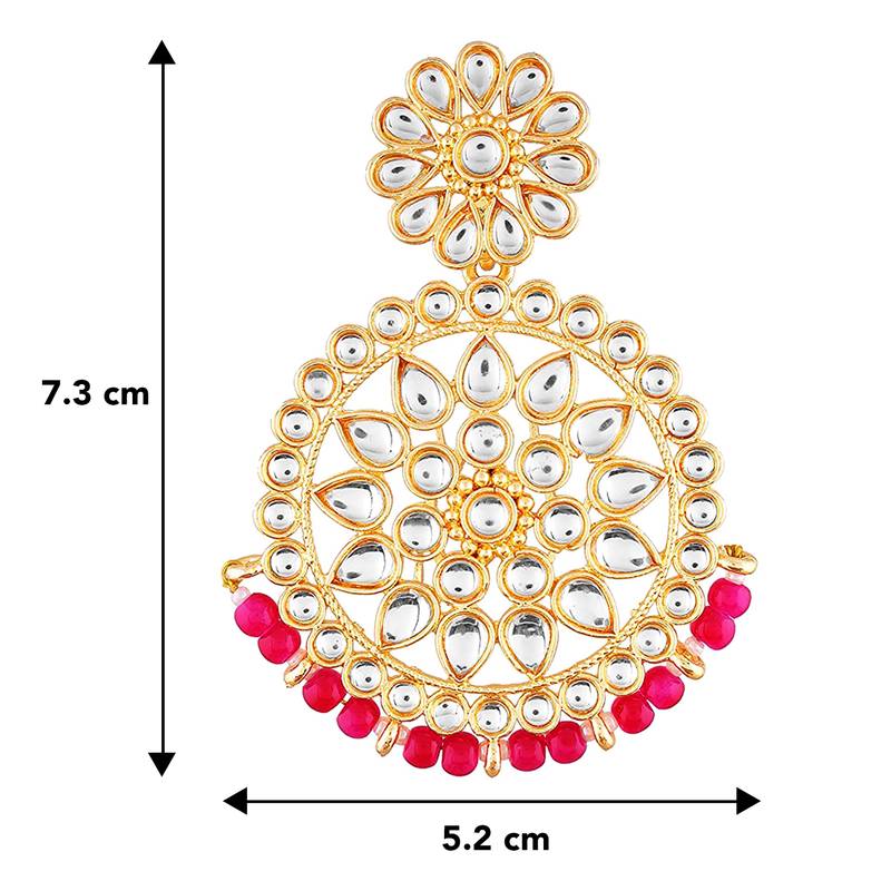 | Product Name | Aheli Traditional Jewellery 18k Gold Plated Brass Kundan Bead Pink Chandbali Earrings For Women | |