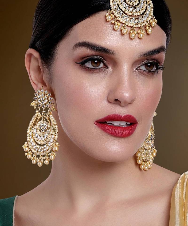 Aheli Traditional Jewellery Kundan Pearl Maang Tikka Earring Set For Women