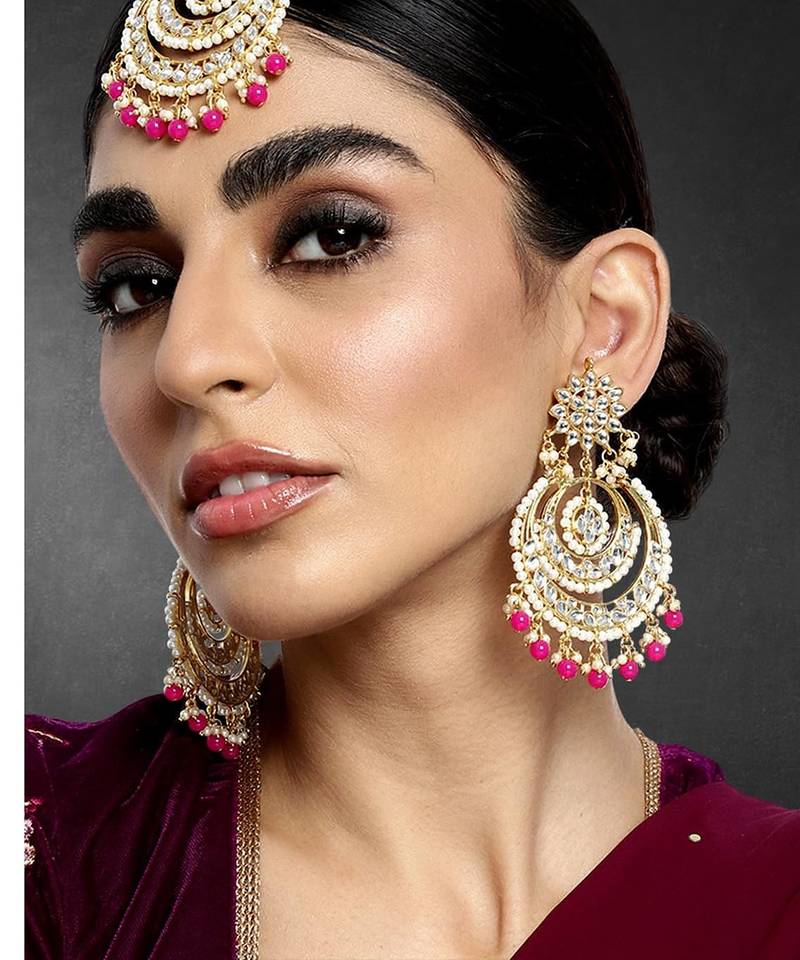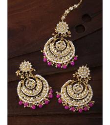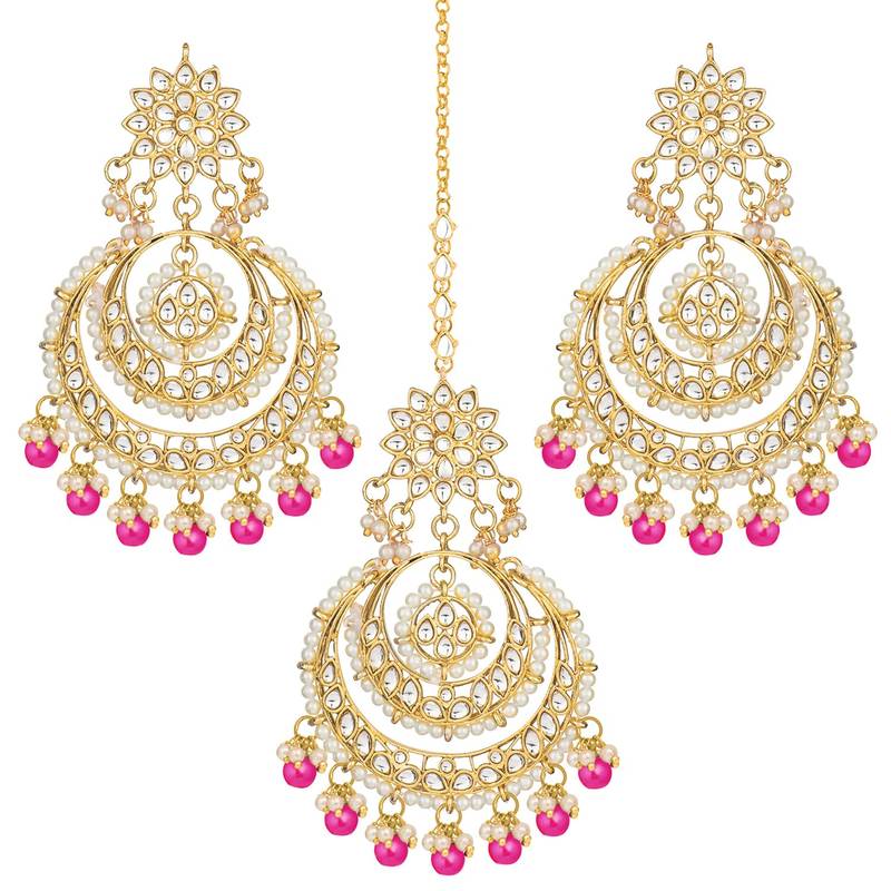 Aheli Traditional Jewellery Kundan Pearl Maang Tikka Earring Set For Women's