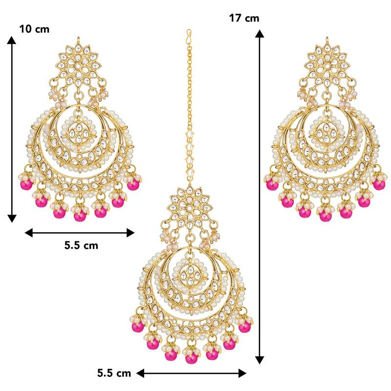 Dimensions: Earrings Length: 10 Cm X Width: 5.5 Cm; Maangtikka Length: 17 Cm X Width: 5.5 Cm; Weight: 79 Grams