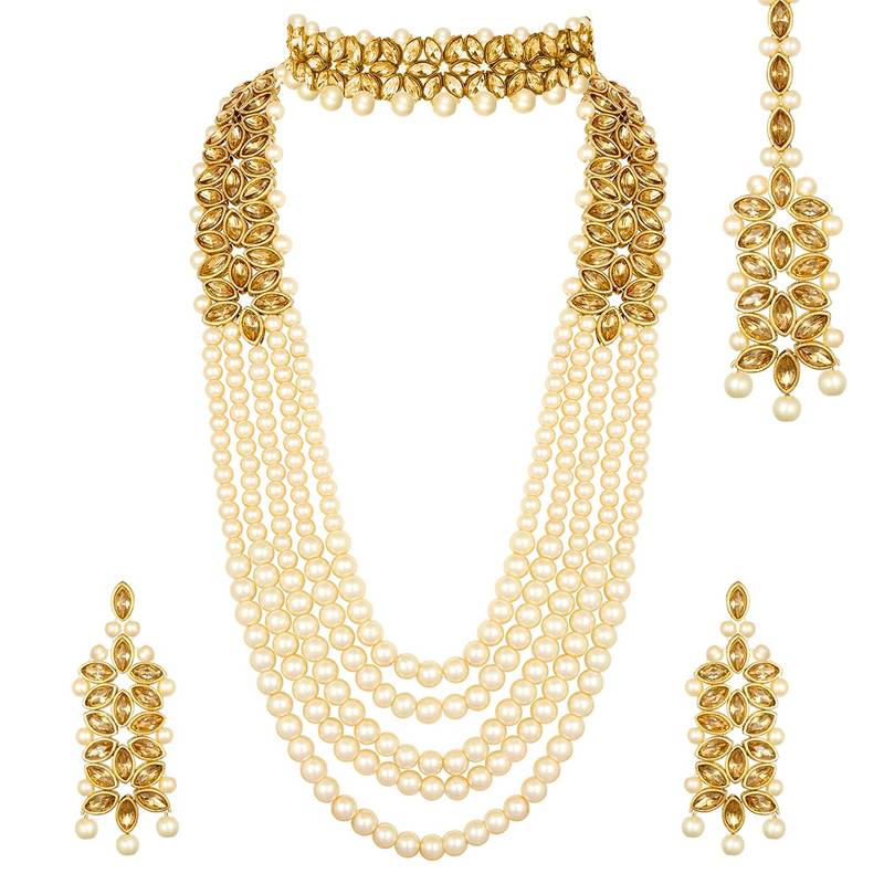 Aheli Traditional Kundan Long Necklace Jewellery Set With Earring Maang Tikka For Women