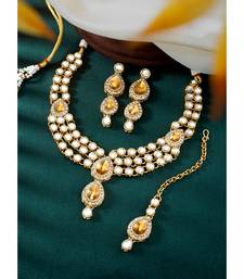 Aheli traditional kundan long necklace with earring maang tikka jewellery set