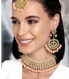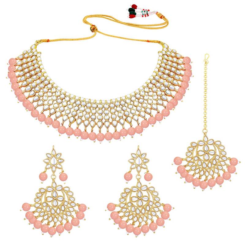 | Product Name | Aheli Traditional Kundan Peach Choker Necklace With Earring Maang Tikka Jewellery Set For Women | |