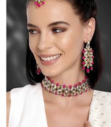 Aheli traditional kundan pearl bridal choker necklace earring maang tikka jewellery set