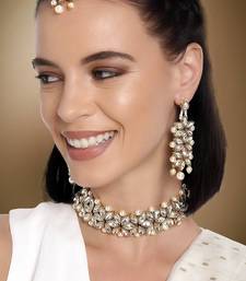 Aheli Traditional Kundan Pearl Bridal Choker Necklace With Earring Maang Tikka Jewellery Set