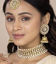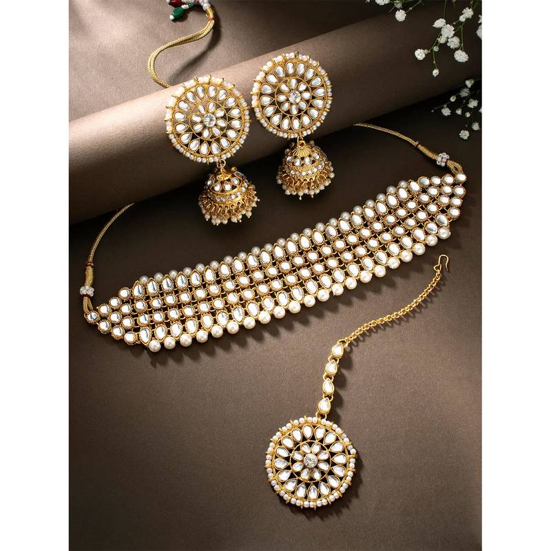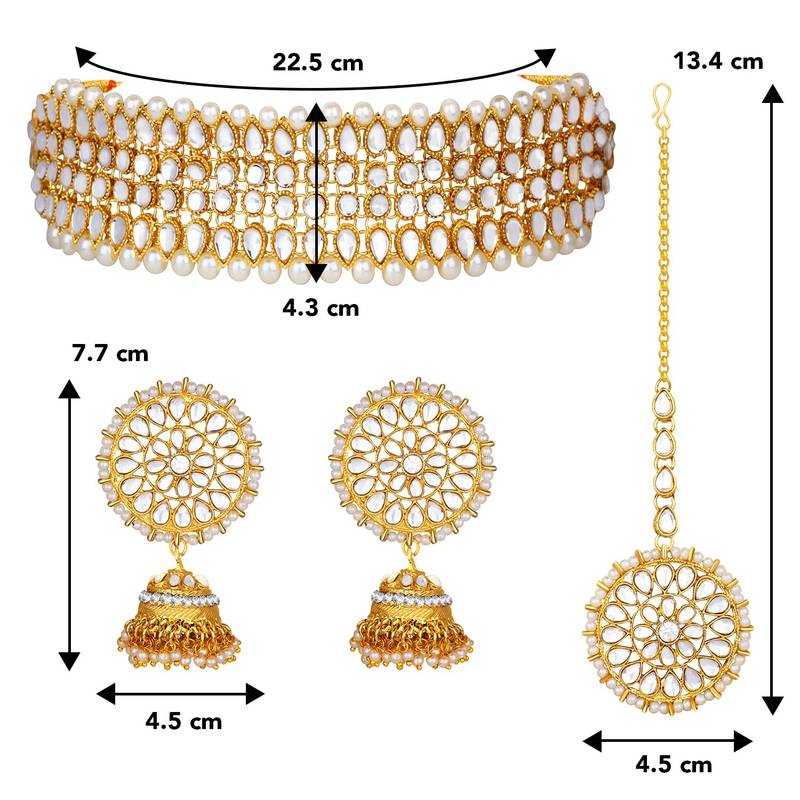 | Product Name | Aheli Traditional Kundan Pearl Choker Necklace With Earring Maang Tikka Jewellery Set For Women | |