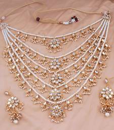 Aheli traditional kundan pearl floral layered long necklace with earring jewellery set for women