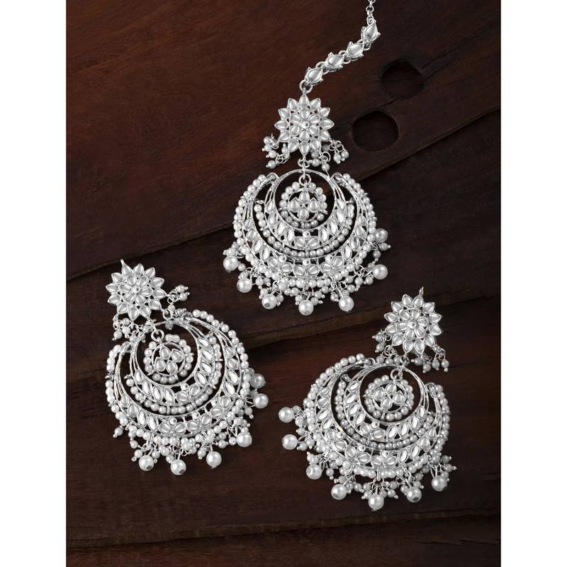 Aheli Traditional Kundan & Pearl Maang Tikka With Chandbali Earring Jewellery Set For Women