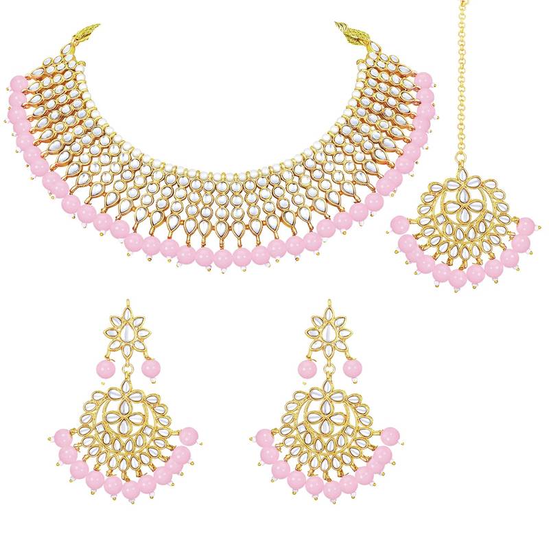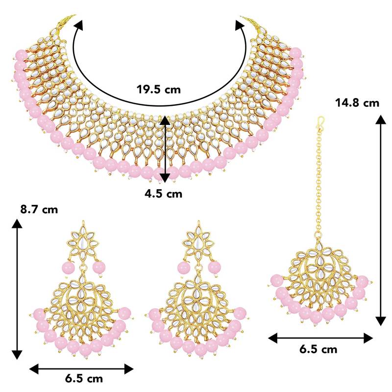 | Product Name | Aheli Traditional Kundan Pink Choker Necklace With Earring Maang Tikka Jewellery Set For Women | |