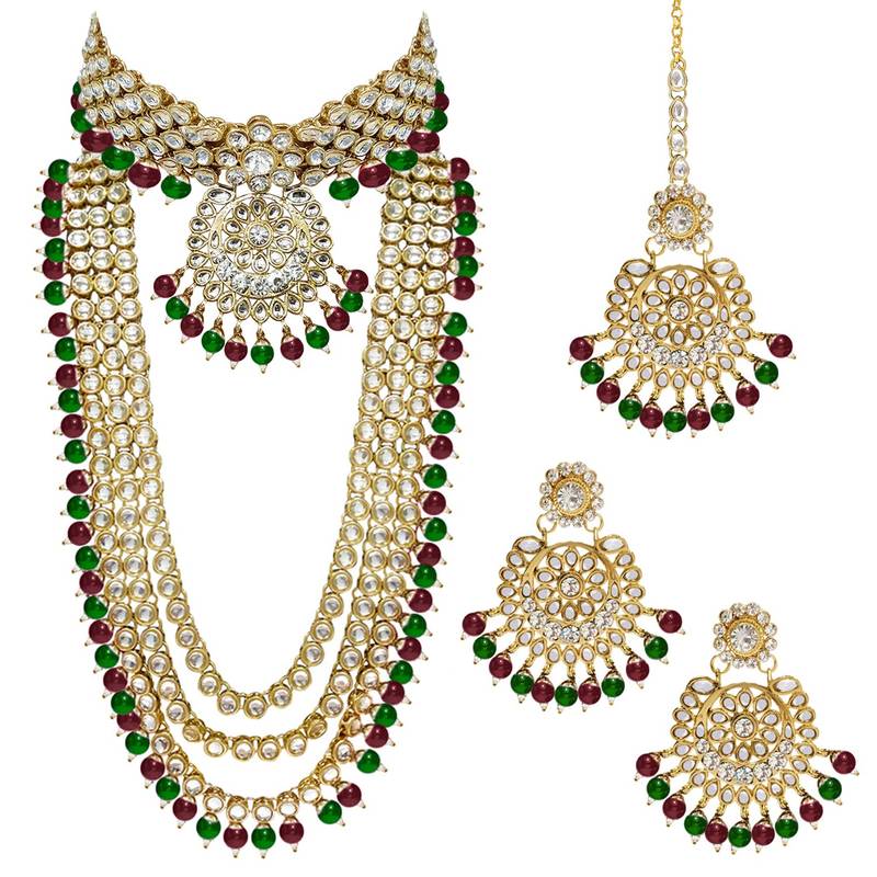 1 Choker/ 1 Long Necklace/ 1 Pair Of Earrings/ 1 Maangtikka