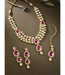 Aheli Traditional Rani Pink Kundan Necklace Earring Maang Tikka Jewellery Set For Women