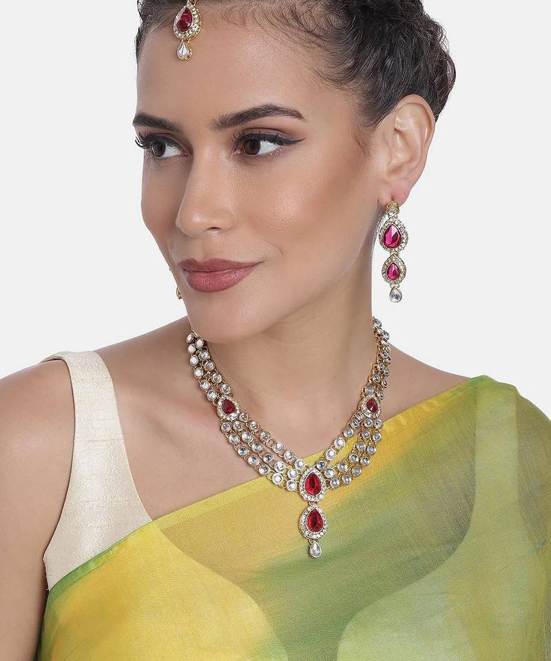 Disclaimer: Slight Variations In Color, Size, And Weight May Occur Due To Lighting, Screen Settings, And Manual Measurement. Images May Be Enlarged—Please Check Product Dimensions For Actual Size.Dimensions: Necklace Length: 26 Cm X Width: 5.5 Cm; Earrings Length: 6 Cm X Width: 1.7 Cm; Maangtikka Length: 12.4 Cm X Width: 1.7 Cm