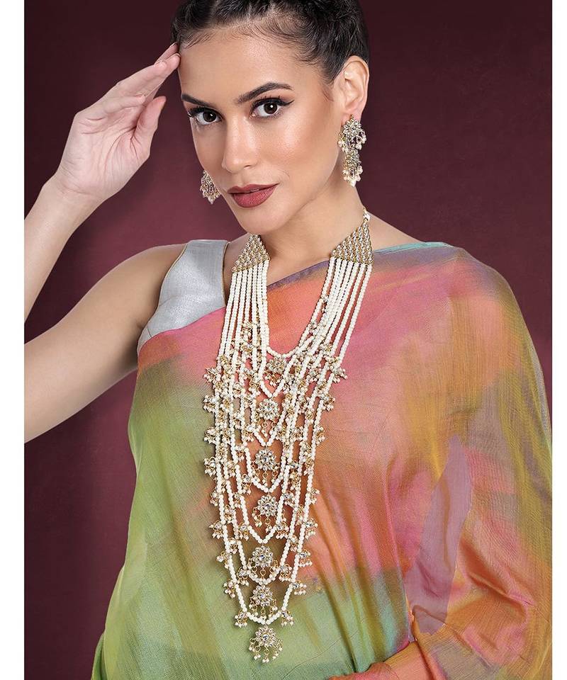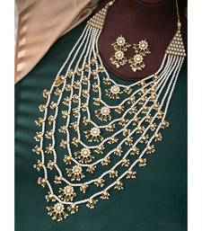 Aheli traditional white floral multi layered necklace earrings jewellery set for women