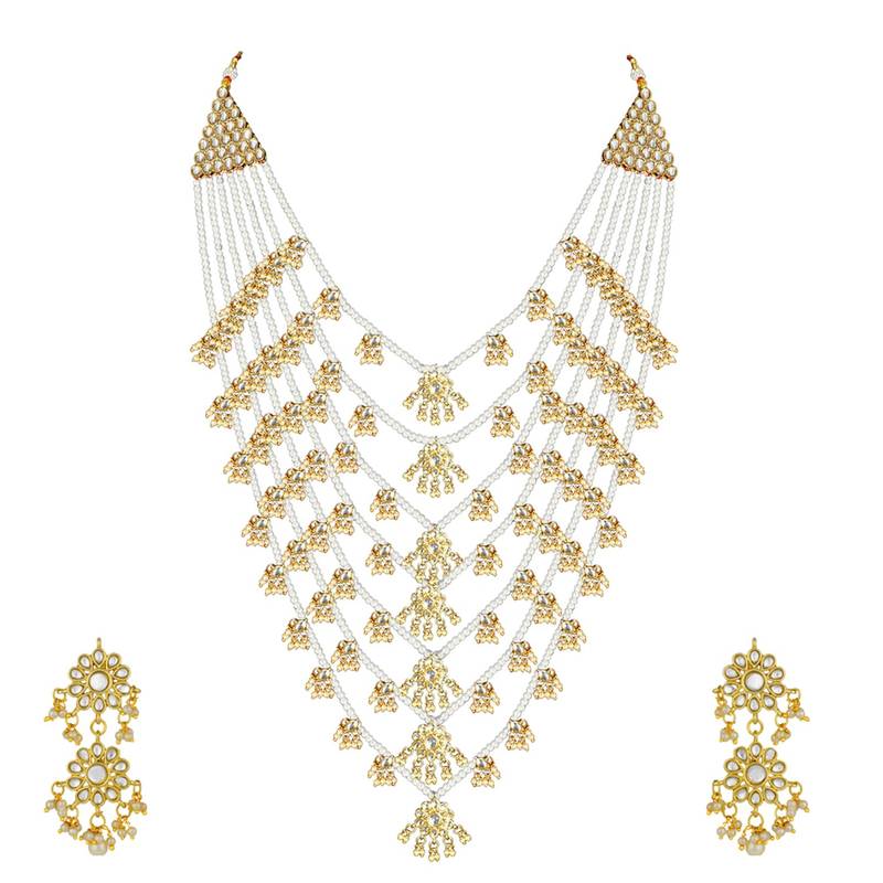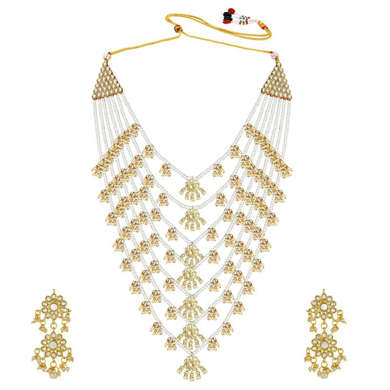 Aheli Traditional White Floral Multi Layered Necklace Earrings Jewellery Set For Women