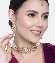 Aheli traditional white kundan choker necklace dangle earring & maangtikka ethnic jewellery set