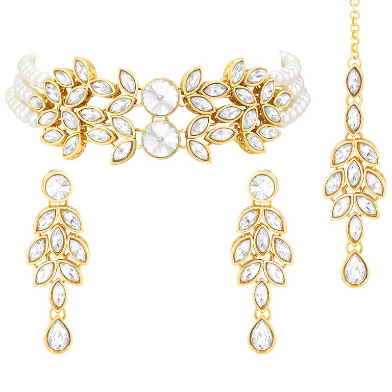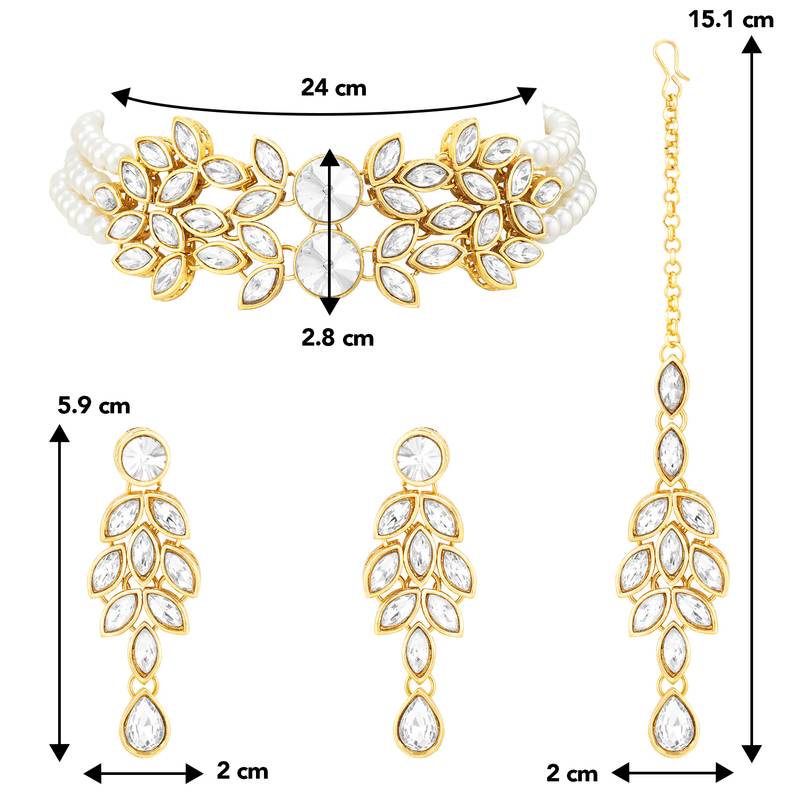 Aheli Traditional White Kundan Choker Necklace Dangle Earring & Maangtikka Ethnic Jewellery Set