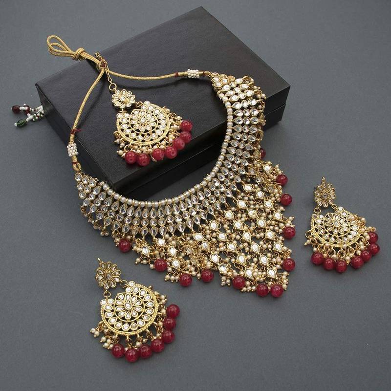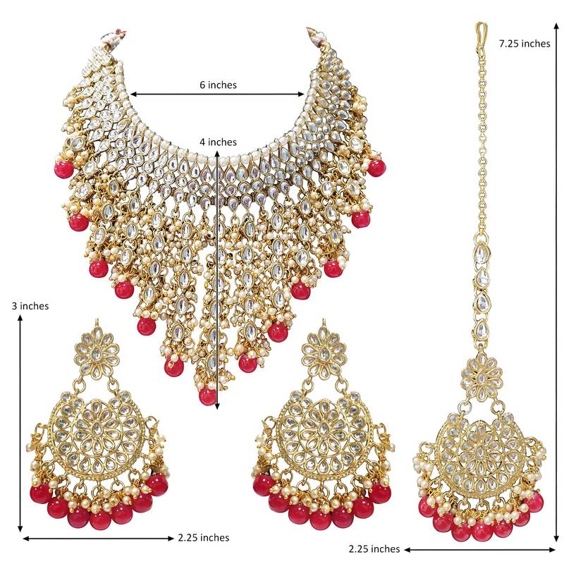 Disclaimer: Slight Variations In Color, Size, And Weight May Occur Due To Lighting, Screen Settings, And Manual Measurement. Images May Be Enlarged—Please Check Product Dimensions For Actual Size.Dimensions: Necklace Length: 16.5 Cm X Width: 9 Cm; Earrings Length: 7 Cm X Width: 4 Cm; Maangtikka Length: 19 Cm X Width: 4 Cm; Weight: 99 Grams