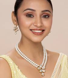 Aheli white crystal pearl long necklace with drop earrings traditional ethnic jewellery set