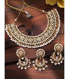 Aheli white kundan choker necklace earring with maang tikka jewellery set