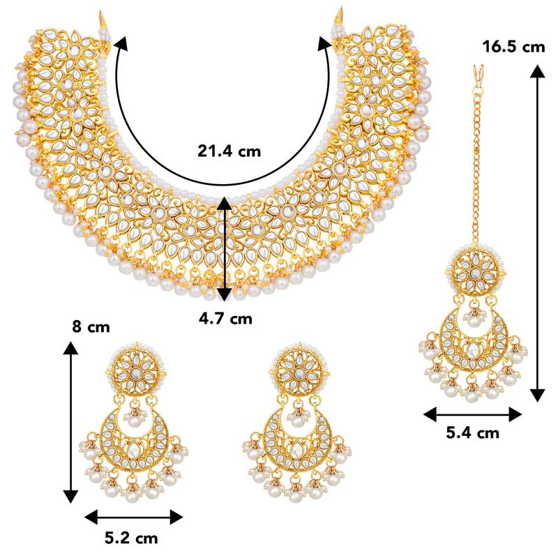 Aheli White Kundan Choker Necklace Earring With Maang Tikka Jewellery Set
