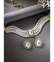 Aheli white stone beaded adjustable necklace jewellery set for women