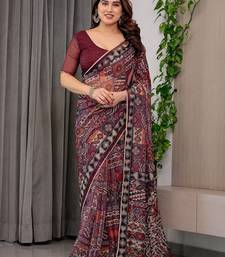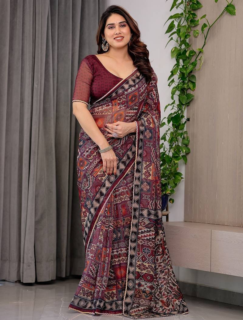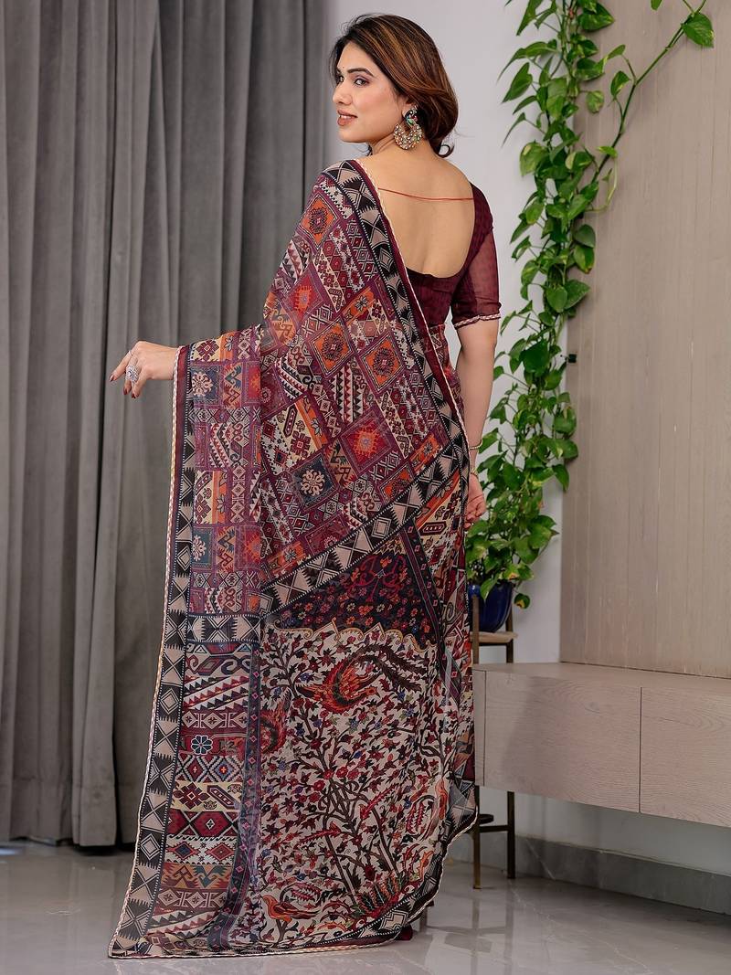 Elegant printed organza sarees with multicolor edge borders