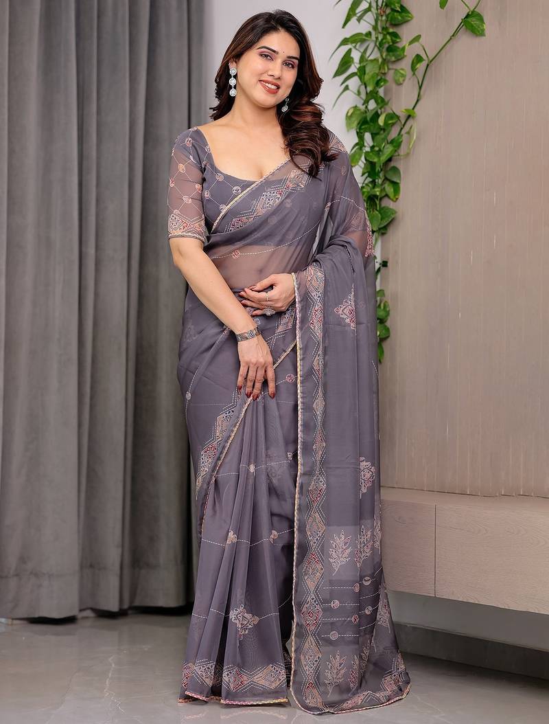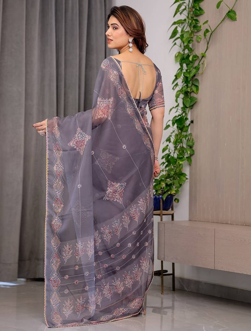 | Product Name | Elegant Printed Organza Sarees With Multicolor Edge Borders | |