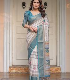 Ethnic handloom cotton printed saree with floral pattern & blouse piece