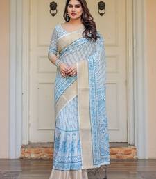 Party wear handloom cotton floral printed saree with blouse fabric