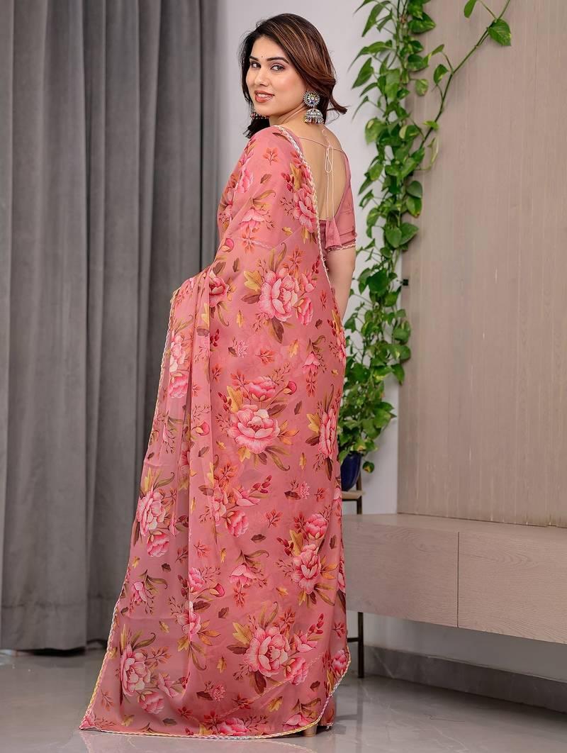 | Product Name | Premium Printed Organza Sarees With Multicolor Border Finish | |