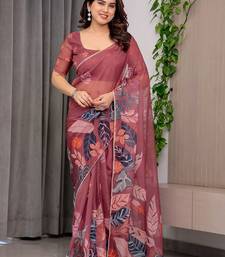 Premium printed organza sarees with multicolor border finish