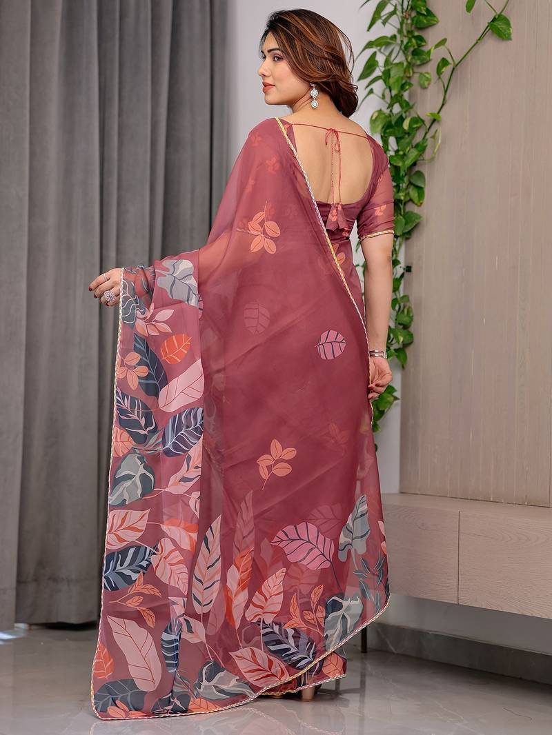 | Product Name | Premium Printed Organza Sarees With Multicolor Border Finish | |