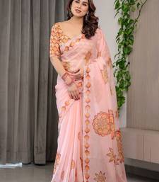 Premium printed organza sarees with multicolor border finish