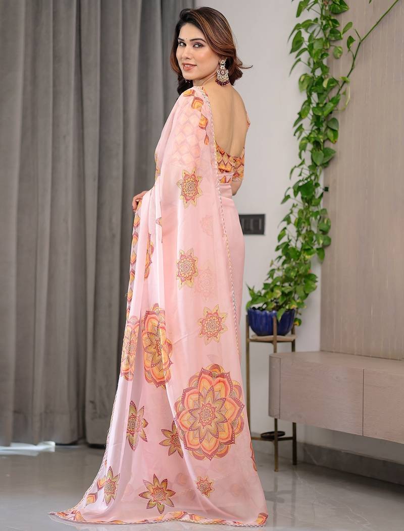 | Product Name | Premium Printed Organza Sarees With Multicolor Border Finish | |
