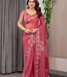 Sheer organza printed sarees with multicolor border detailing