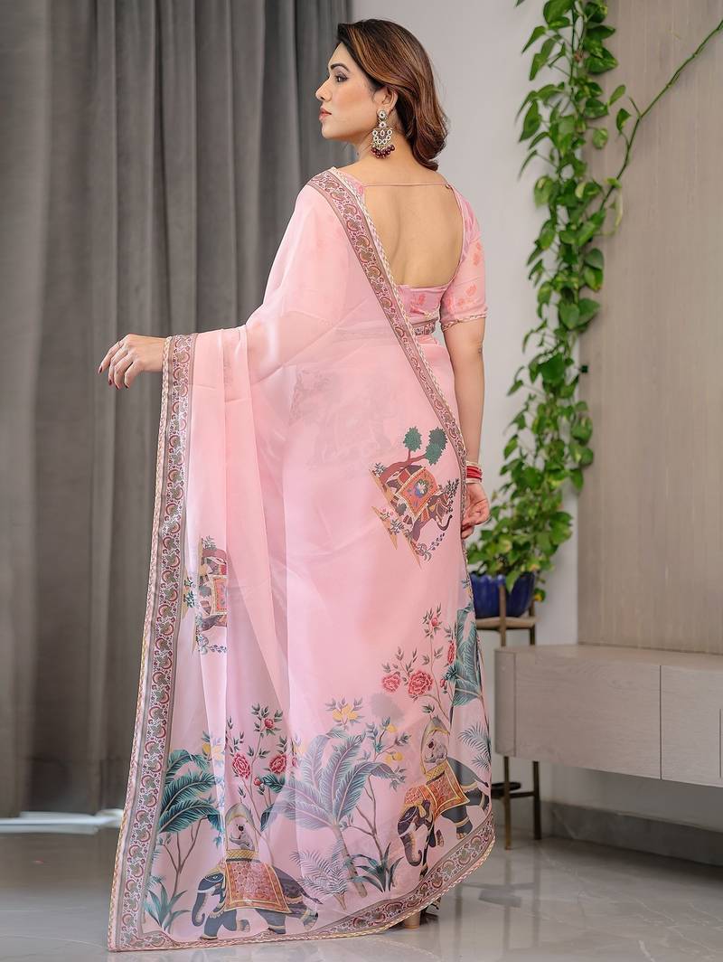 | Product Name | Sheer Organza Printed Sarees With Multicolor Border Detailing | |