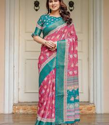 Stylish handloom cotton floral print saree with matching blouse piece