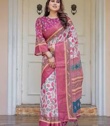 Women's handloom cotton floral print saree with attached blouse piece