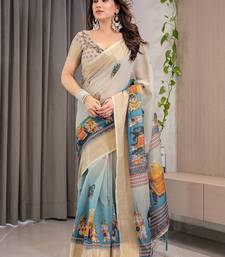 | Product Name | Women S Handloom Linen Weaved With Golden Zari Saree Floral Printed With Attached Blouse & Tassels | |