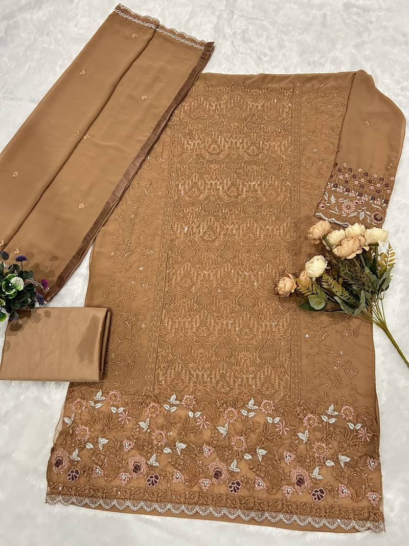 Brown fox georgette semi stitched suit with embroidery & sequence work