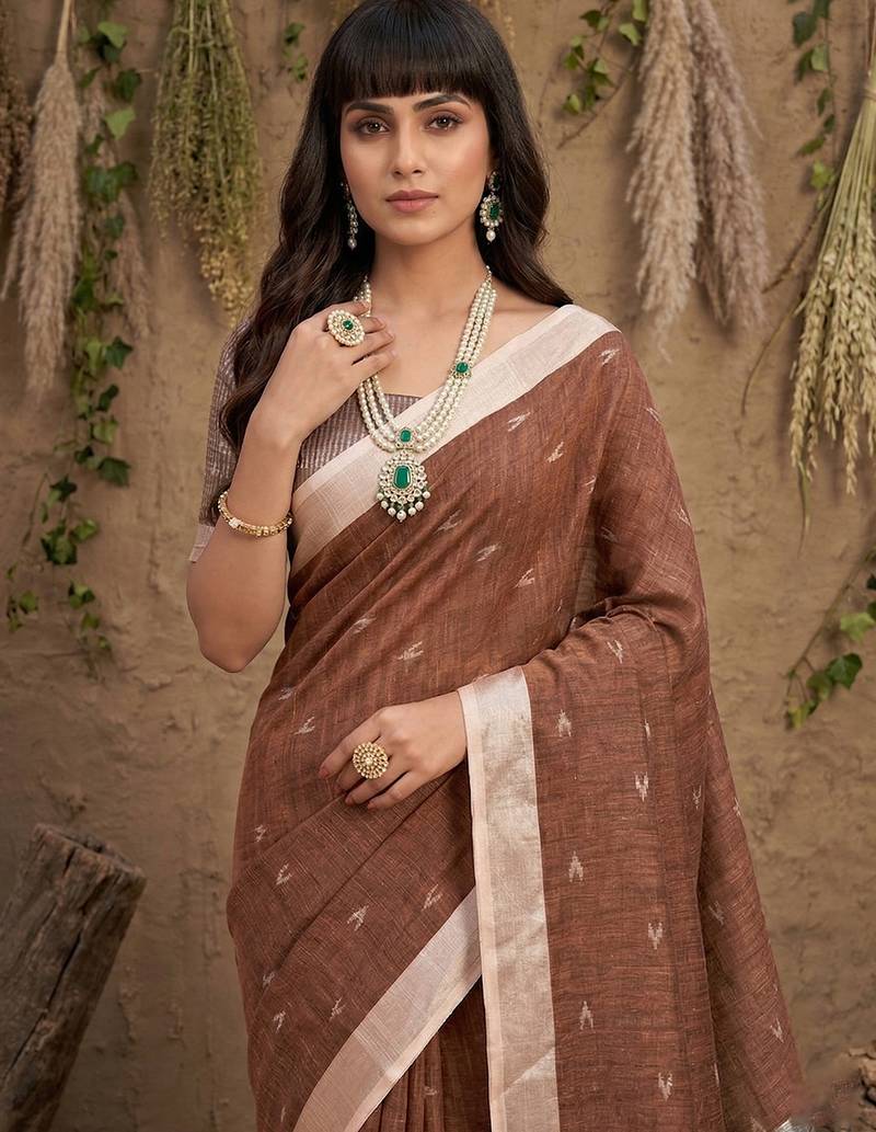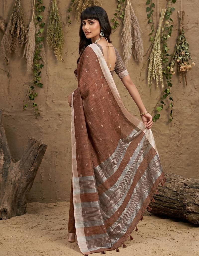 | Product Name | Brown Linen Cotton Zari Work Saree With Blouse | |