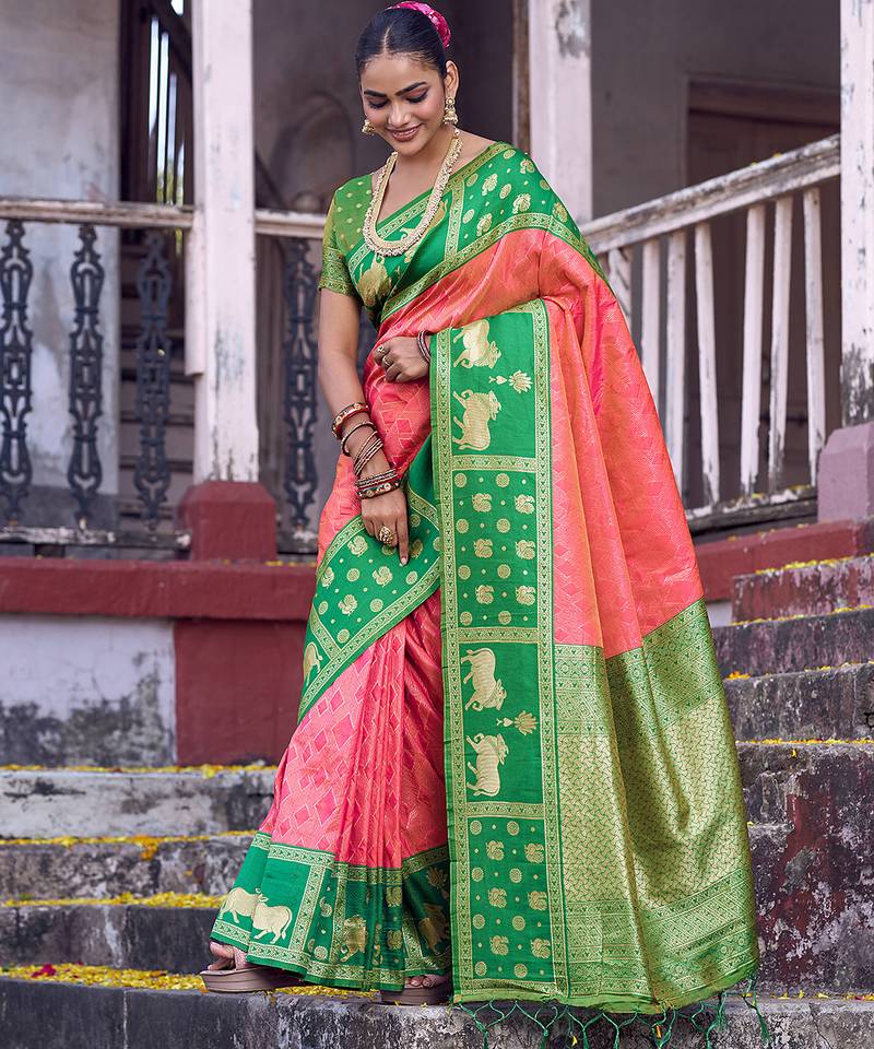 | Product Name | Coral Soft Silk Woven Saree With Blouse | |