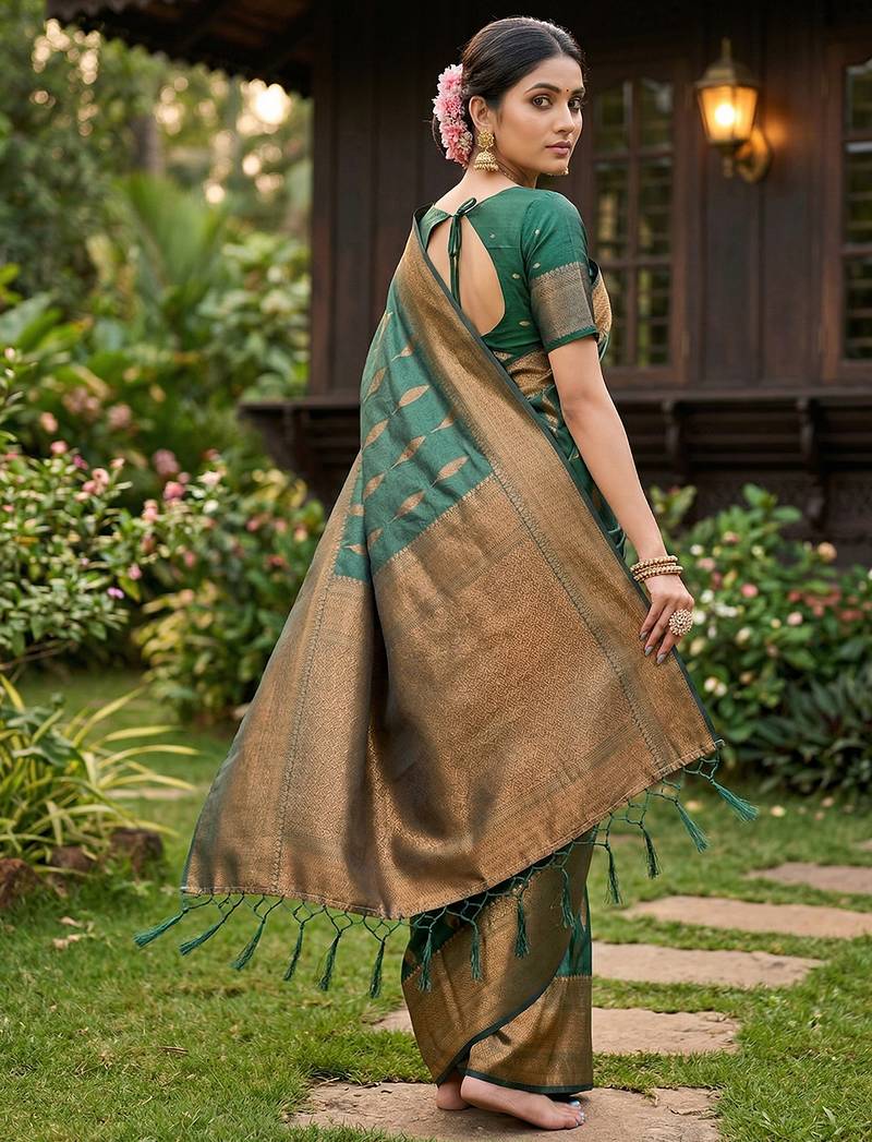 Product Name D Green Silk Blend Woven Saree With Blouse