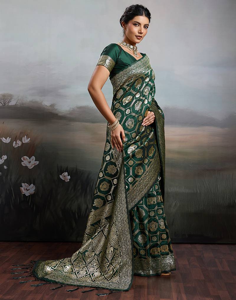 | Product Name | Green Silk Blend Woven Saree With Blouse | |