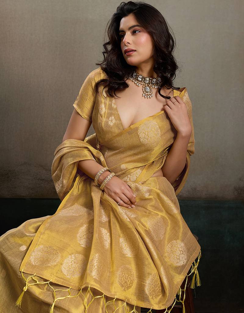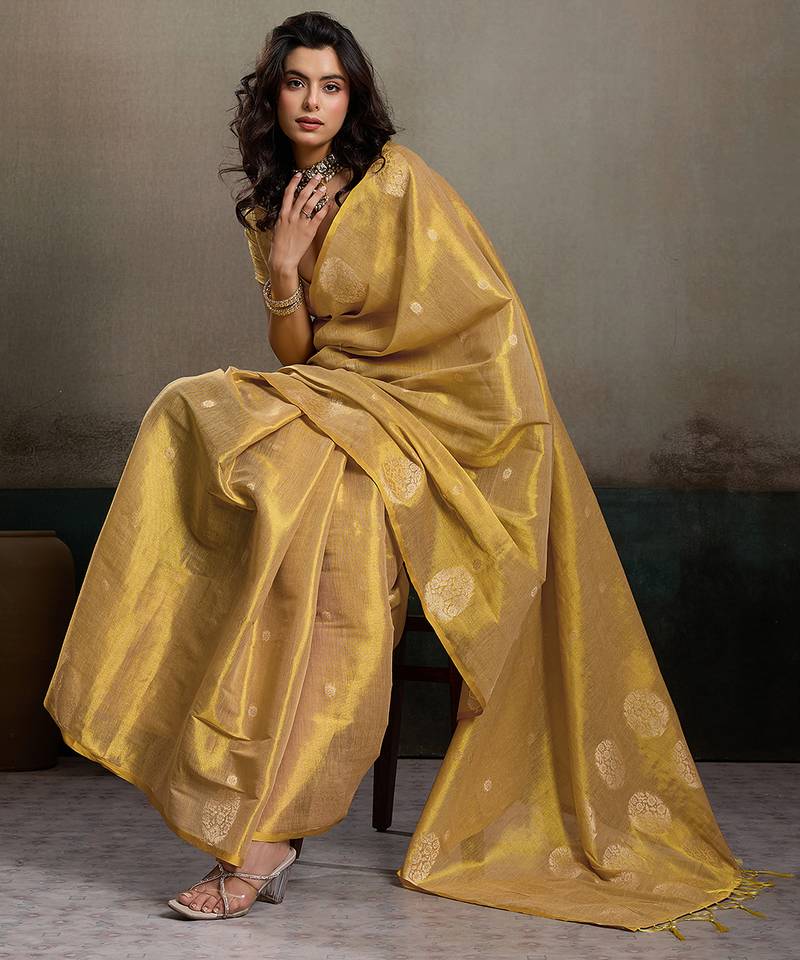 Gold tissue silk woven saree with blouse