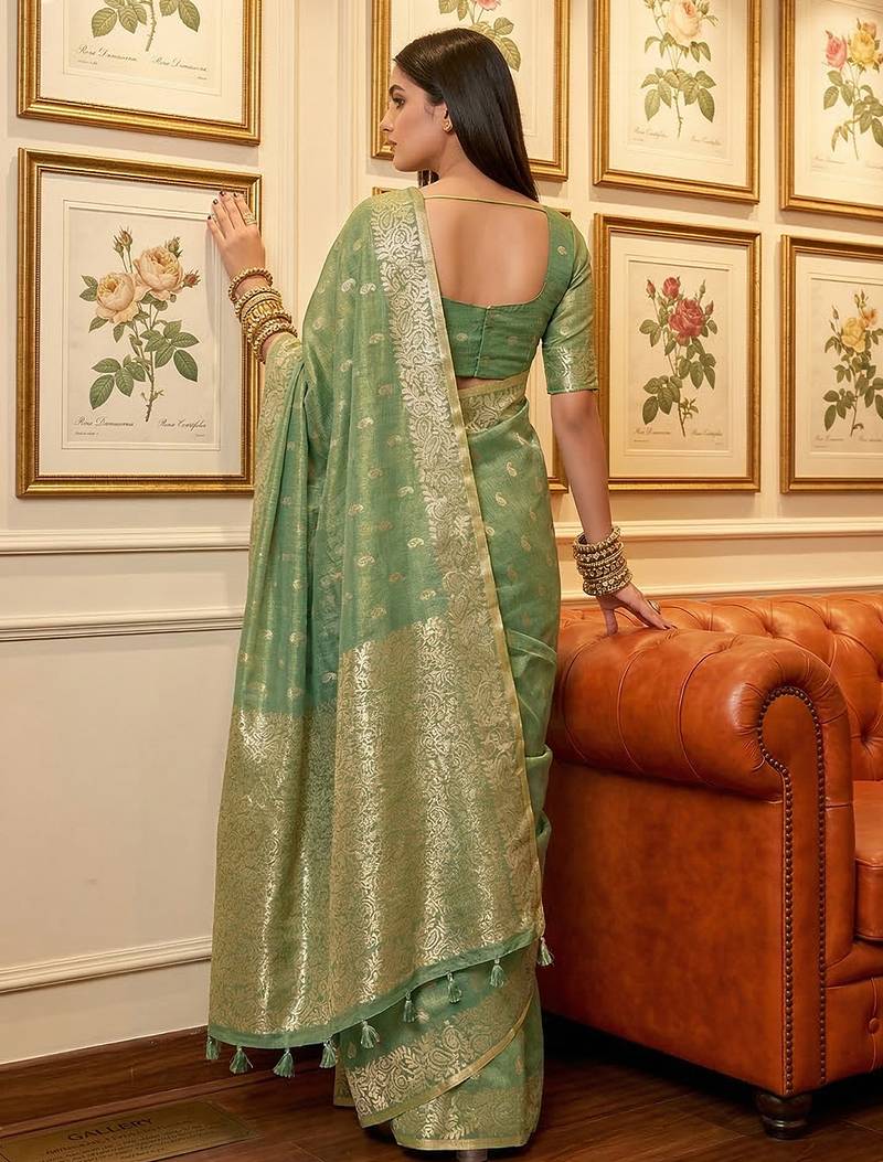 | Product Name | Green Woven Tissue Silk Saree With Blouse | |