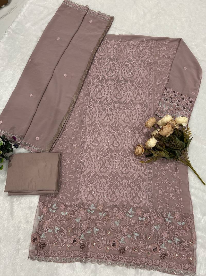 | Product Name | Lavender Fox Georgette Semi Stitched Suit With Embroidery & Sequence Work | |