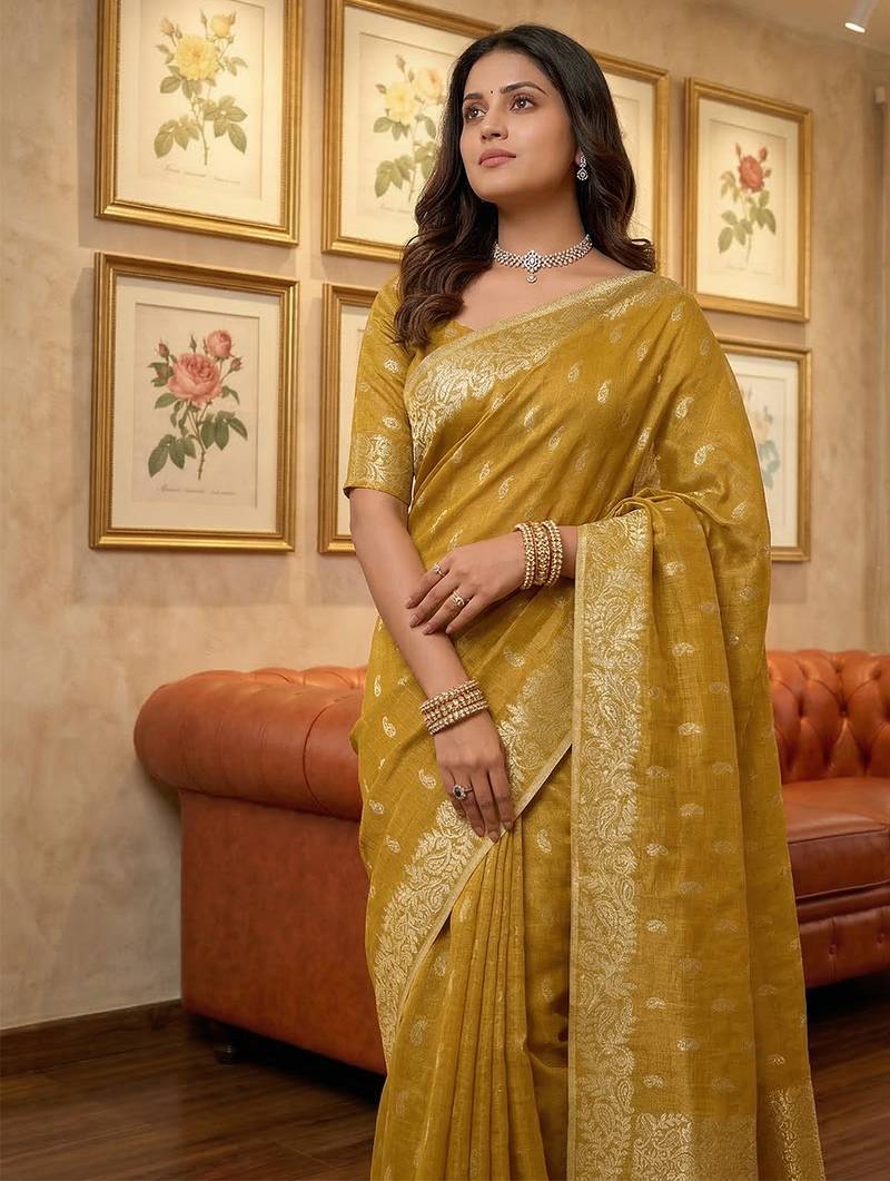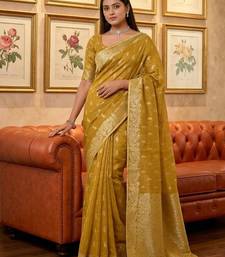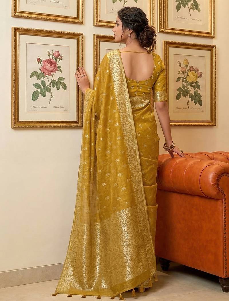 Mustard woven tissue silk saree with blouse
